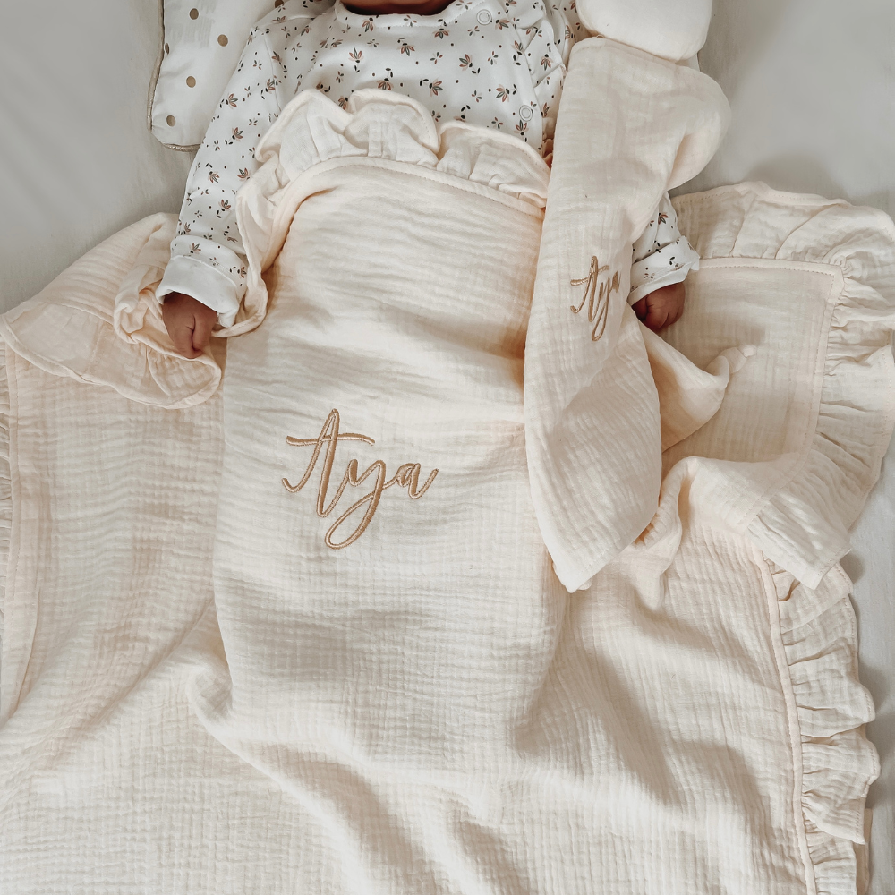 La broderie est magnifique et le tissu est vraiment doux. Le rendu est encore plus joli que sur les photos. Je recommande sans hésiter.